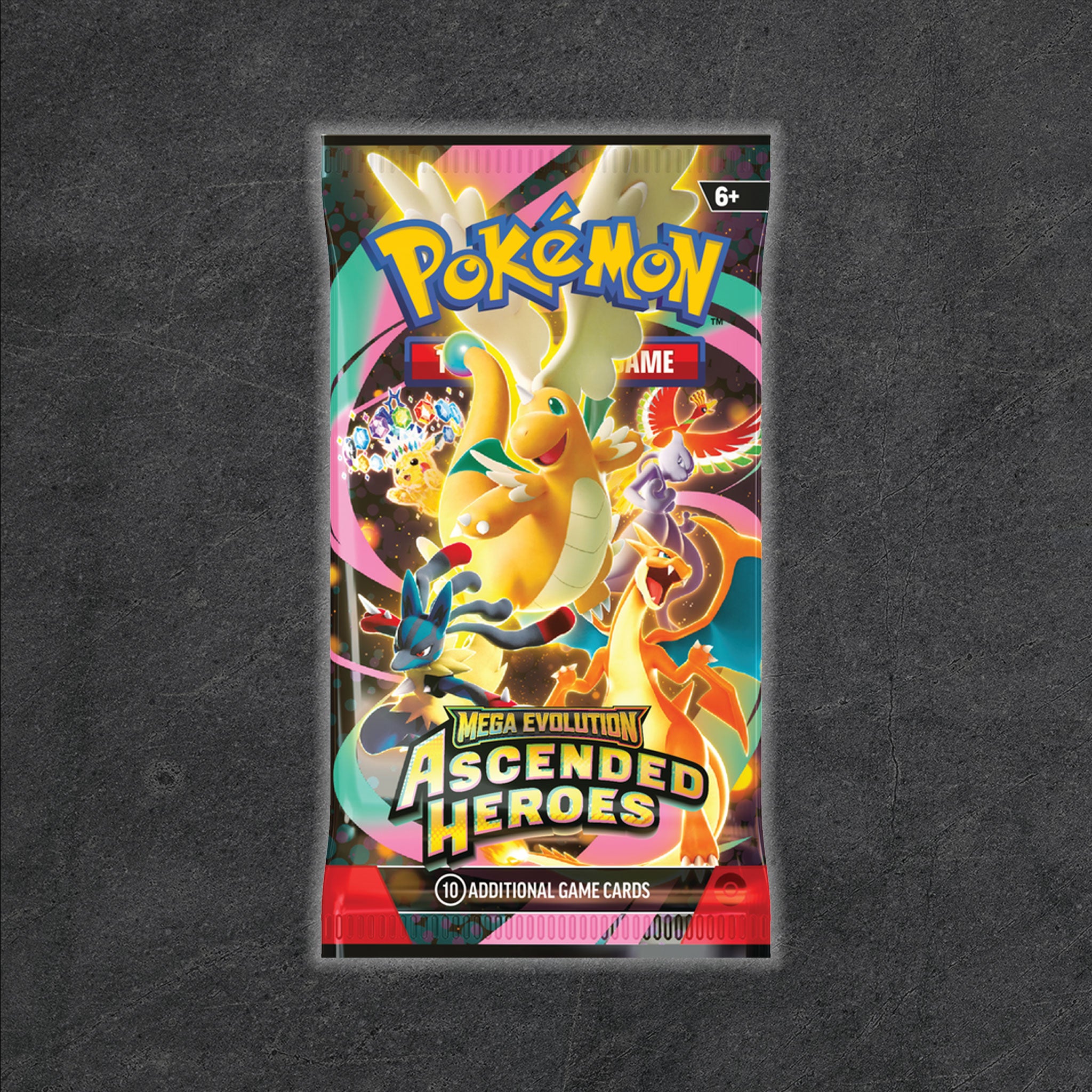 Marvel at the awesome potential as Mega Dragonite ex takes flight, leading a gathering of all-star Pokémon to battle! Trainer’s Pokémon and Stellar Tera Pokémon ex join returning and newly discovered Mega Evolution Pokémon ex, including some with special artwork showing off their biggest and boldest attacks. Celebrate the stars of Scarlet & Violet and the dawn of Mega Evolution with the Pokémon TCG: Mega Evolution—Ascended Heroes expansion!