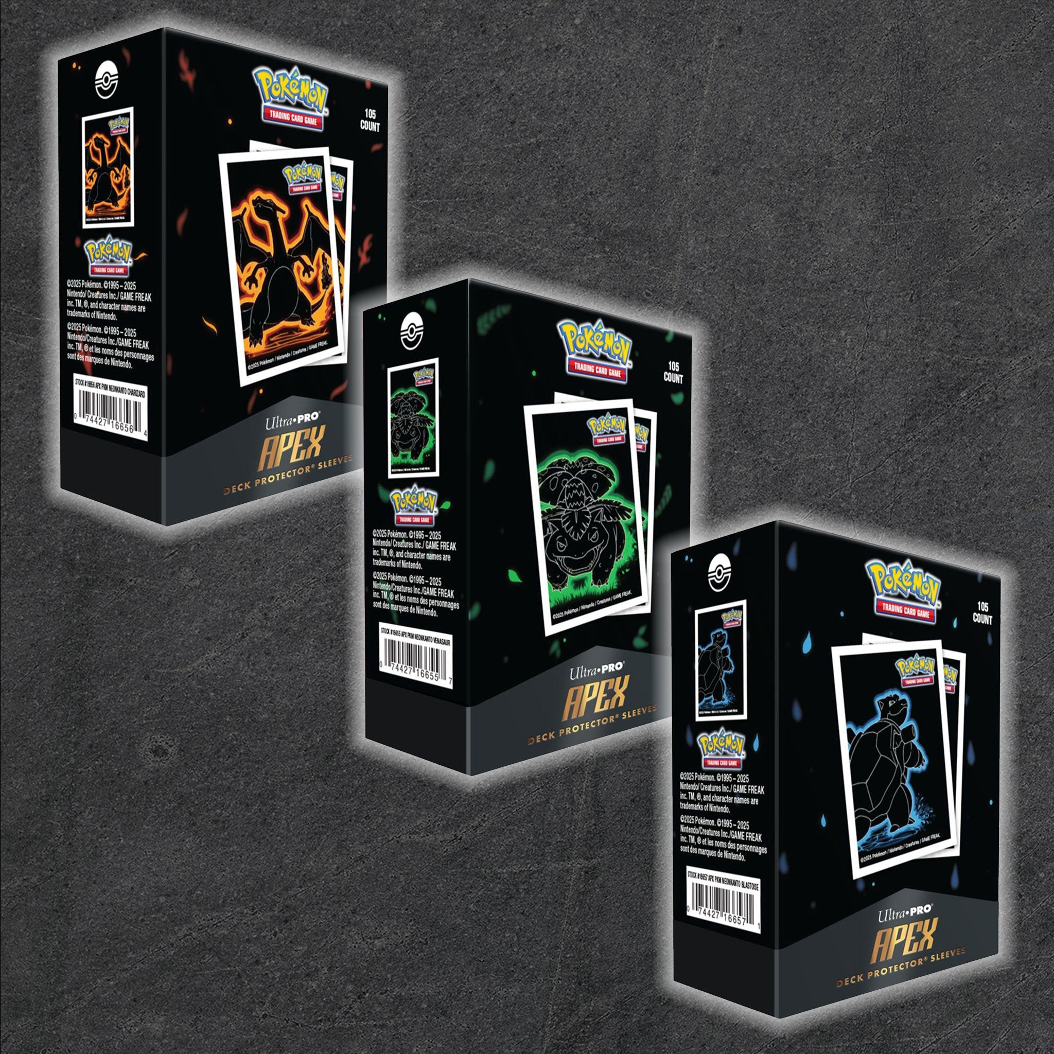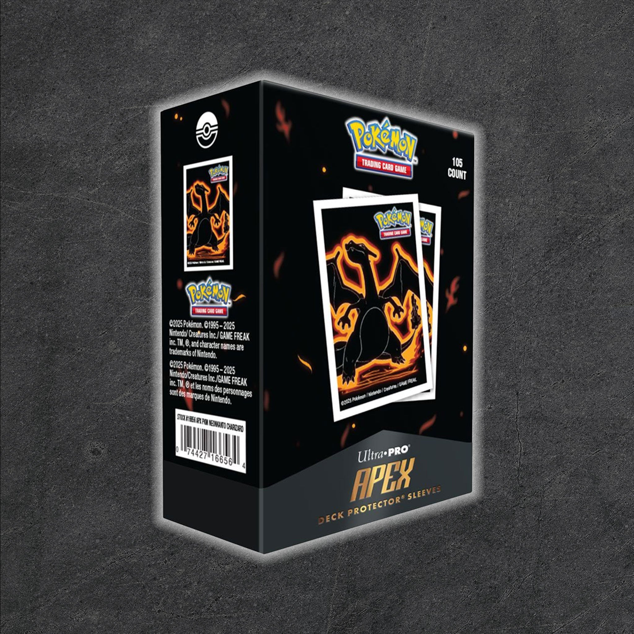 The 105ct APEX Deck Protector® Sleeves for the Pokémon Trading Card Game are made with our new easy-shuffle formulation and feature bold artwork of Charizard bursting through a dark background on a textured back. Archival-safe polypropylene materials ensure you can sleeve your cards with confidence, and the gloss clear front allows your foil cards to shine! Sized for standard size trading cards measuring 2.5 in. x 3.5 in.