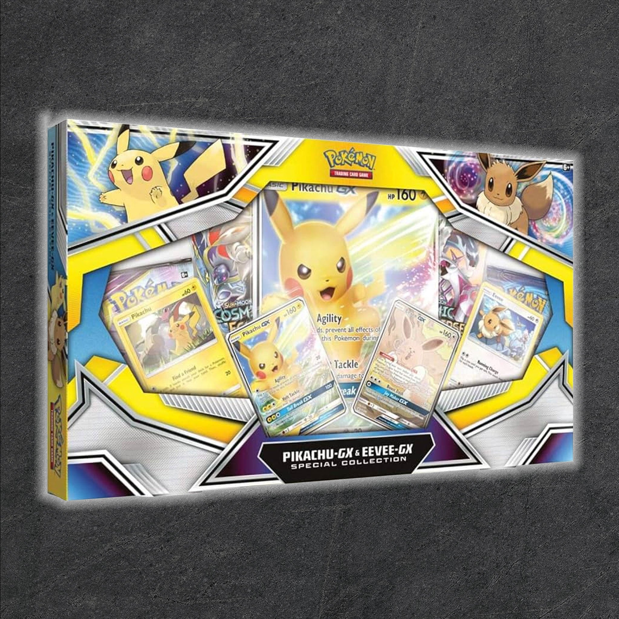 It’s great to befriend Pokémon who are known by all, and the Pokémon Trading Card Game: Pikachu-GX & Eevee-GX Special Collection brings you two big stars as Pokémon-GX. This awesome collection includes foil versions of both Pikachu-GX and Eevee-GX, friends during battles and amazing journeys alike, plus a stunning oversize card featuring Pikachu-GX. Add two shining stars to your Pokémon TCG collection today!