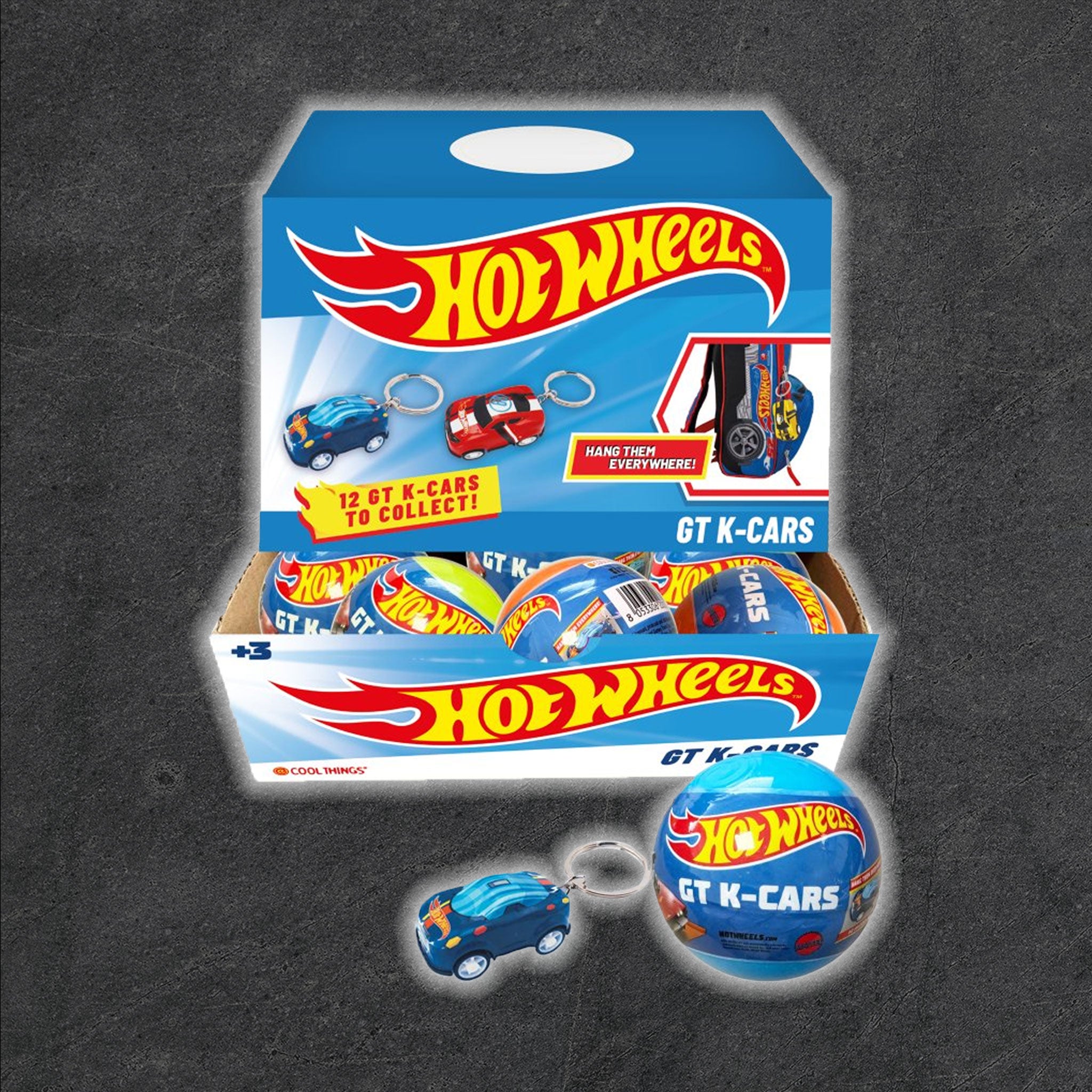 Rev up your day with the officially licensed Hot Wheels GT K-Cars Keyring Capsules! Each surprise capsule contains a mini GT-style Hot Wheels car fitted with a metal keyring, so you can clip your favorite rides onto backpacks, lunch bags, keys – anywhere you want to show off your style. With 12 GT K-Cars to collect, each featuring bold colors and signature Hot Wheels detailing, every unboxing delivers a burst of excitement. Whether you’re a long-time Hot Wheels fan or hunting for the perfect pocket-sized gift, these collectible keyring cars are guaranteed to keep the fun rolling.