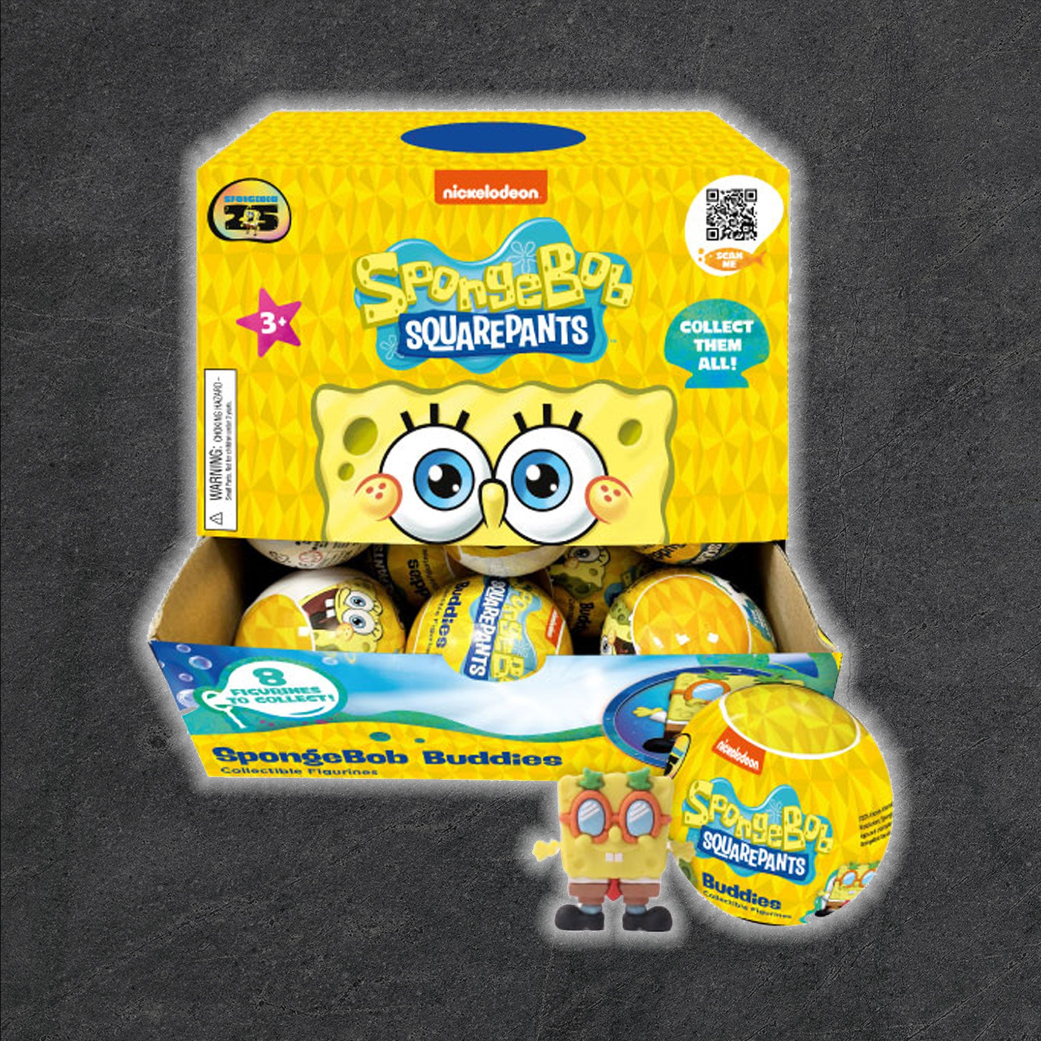 Dive into the fun of Bikini Bottom with the officially licensed SpongeBob SquarePants Buddies Collectible Figurines! Each surprise capsule contains one mini character from the SpongeBob world, featuring bright colours, expressive faces and plenty of personality. There are 8 Buddies to collect, including SpongeBob, Patrick, Squidward and Mr Krabs—all styled in playful poses that fans of every age will recognize. With their bold yellow capsules and iconic artwork, these little buddies bring instant joy to any SpongeBob fan. Perfect as a gift or a fun collectible series to complete.